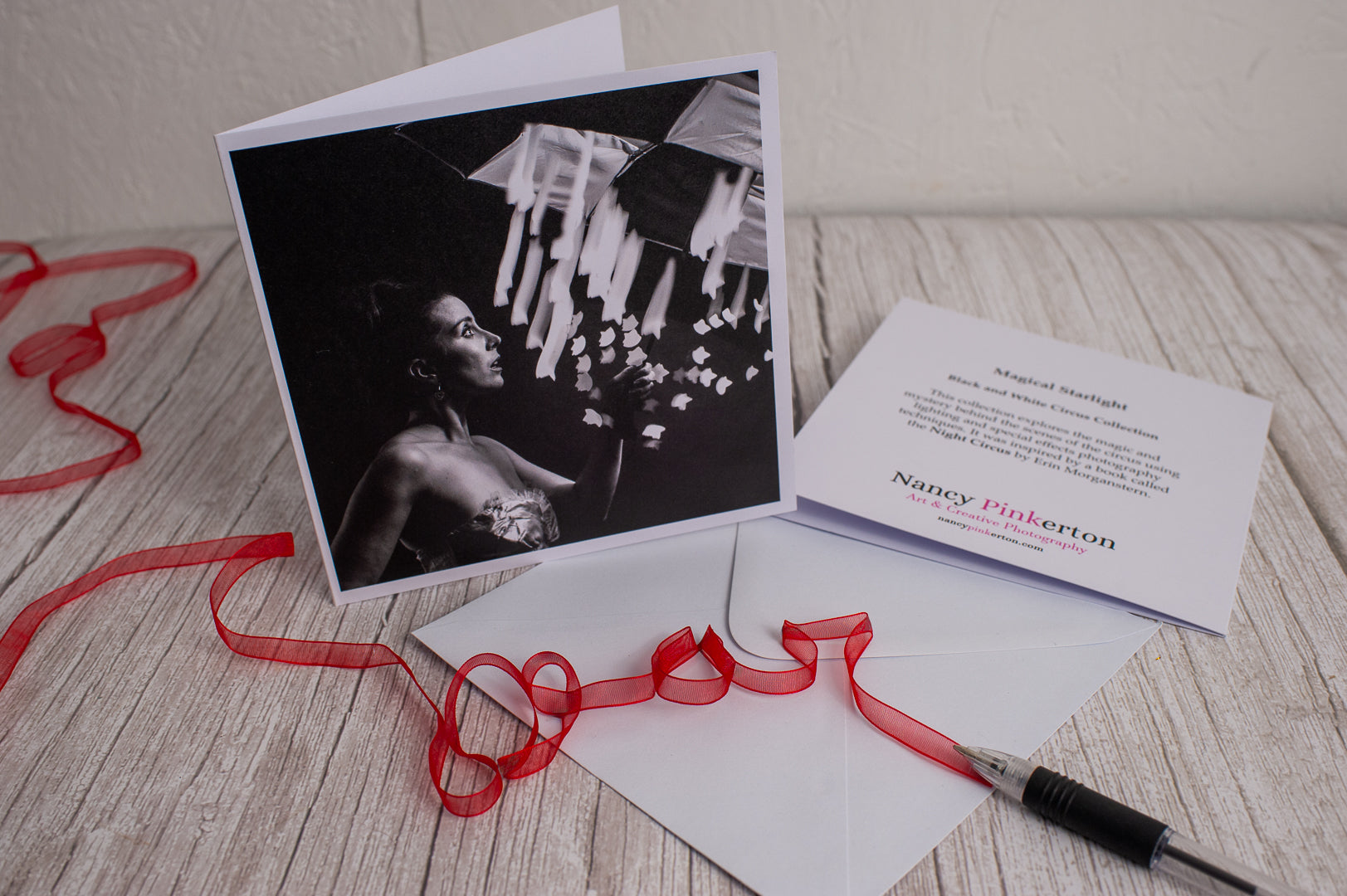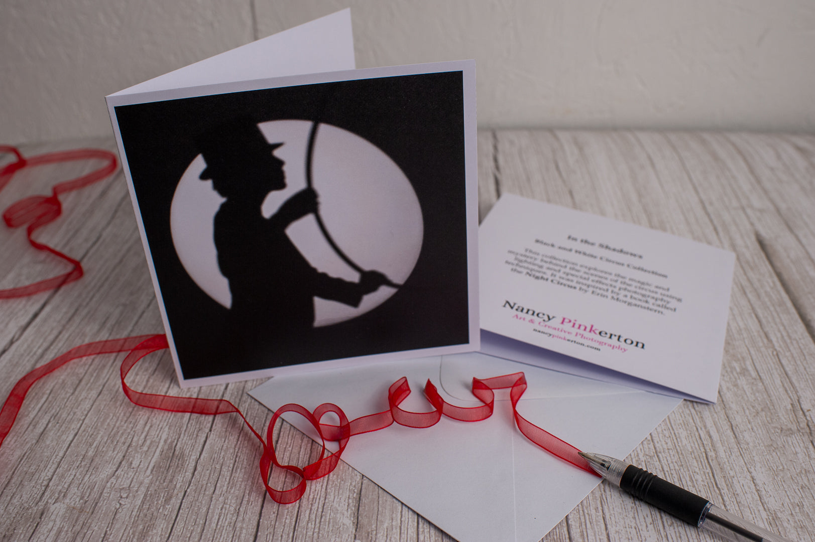 Choose your own set of greeting cards from two captivating collections, the "Witches, the Devil and a King" and the "Black and White" collection.