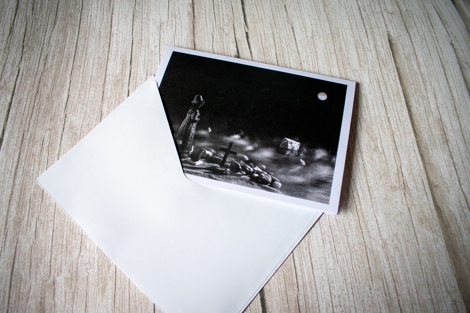 These cards are not only a visual exploration of a significant historical context but also serve as thoughtful keepsakes, with the story behind each image written on the back. They make a striking addition to any collection, inviting reflection on a haunting chapter of history.