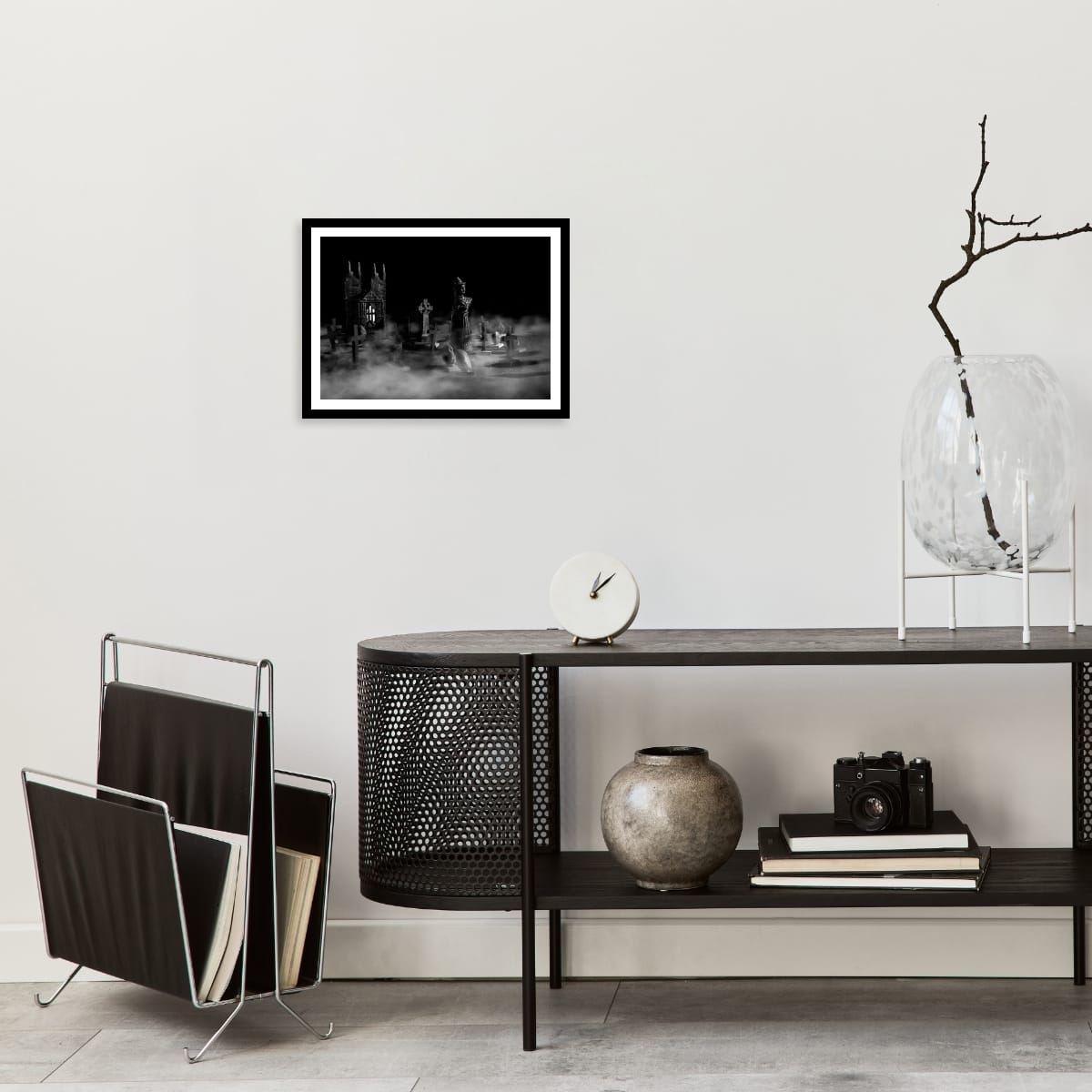 "Witch in the Kirkyard" is a hauntingly beautiful still life photograph, delving into the eerie and mystical atmosphere of the witch trials during the reign of James VI of Scotland. This striking image, enhanced with captivating smoke effects, portrays a witch in the shadowy kirkyard of St Andrew’s church, where witches were believed to gather for their dark rituals. The scene is imbued with an unsettling calm, capturing the tension and supernatural allure of these secretive meetings.