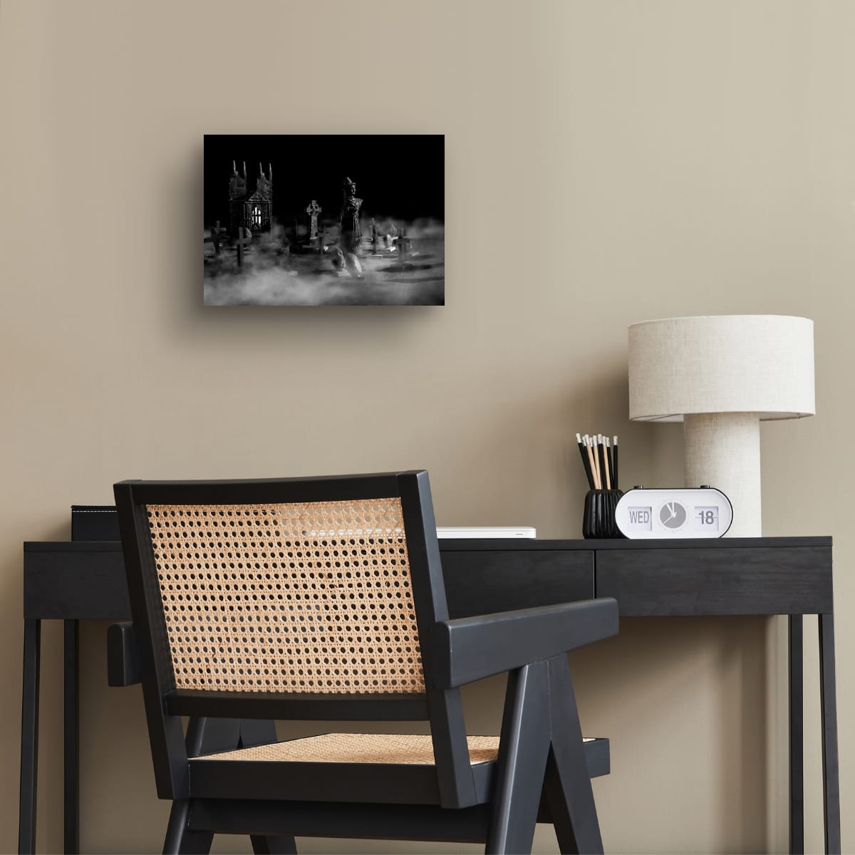 Step into the haunting world of "Witch in the Kirkyard" and explore the dark tales of witchcraft and conspiracy. This artwork is more than a visual experience; it is a journey into the past, where the shadows of history and legend come alive.